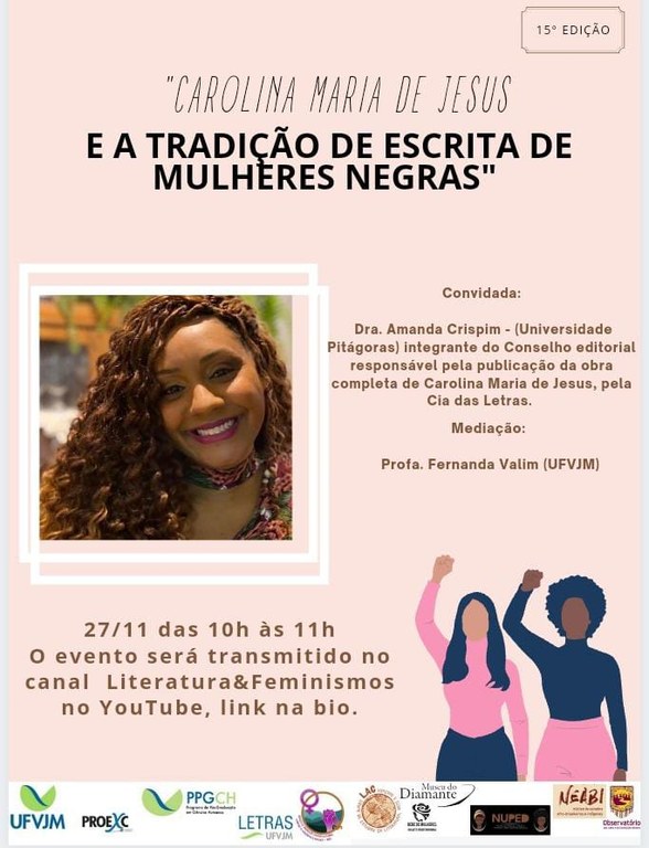 Banner da 15ª edição do projeto de extensão universitária Literatura e Feminismos