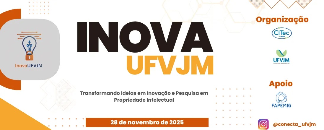 - https://portal.ufvjm.edu.br/agendas/eventos/2025/inovaufvjm-transformando-ideias-em-inovacao-e-pesquisa-em-propriedade-intelectual