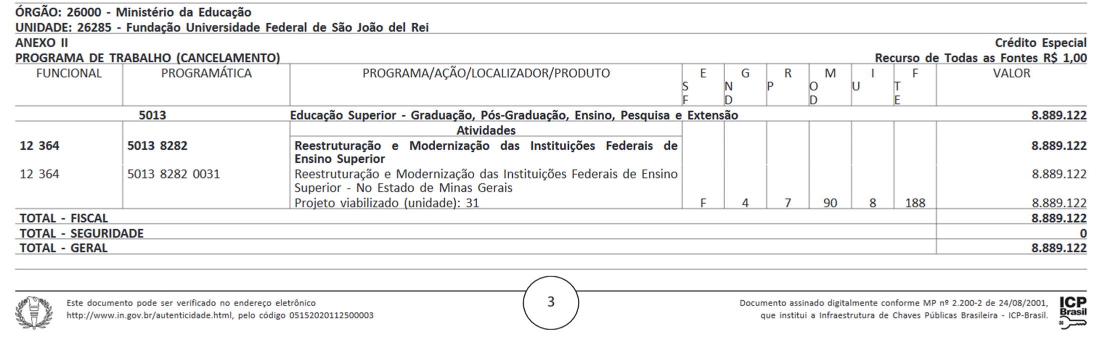 Montante de recursos para a educação destinado à bancada parlamentar de Minas Gerais