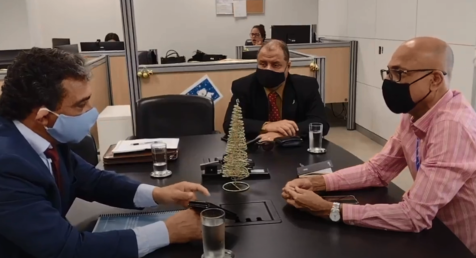 Reitor Janir Alves Soares e pró-reitor de Extensão e Cultura da UFVJM, Marcus Vinicius Carvalho Guelpeli, em reunião no MDR, com o assessor Especial do Ministro Rogério Marinho, professor Aldo Aloísio Dantas da Silva