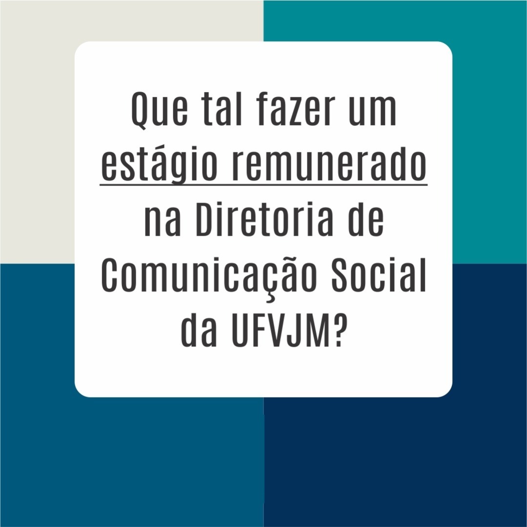 Cartaz de divulgação da prorrogação do prazo das inscrições para 8 vagas de estágio remunerado na Dicom-UFVJM