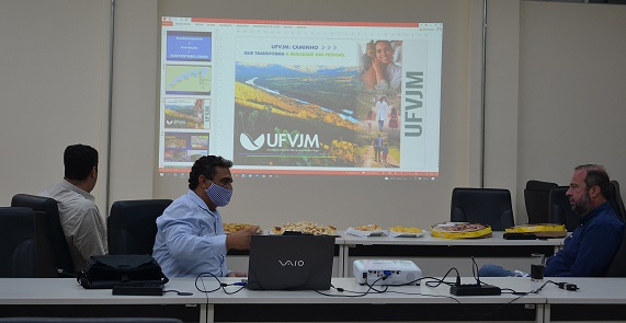 Senador Alexandre Silveira teve oportunidade de conhecer o potencial da instituição, por meio da apresentação do Portfólio da UFVJM pelo reitor Janir Soares