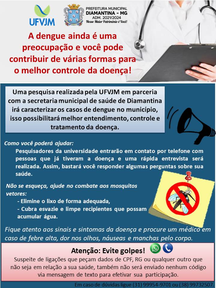 Cartaz da pesquisa sobre o perfil clínico de pessoas infectadas pelo vírus da dengue em Diamantina-MG