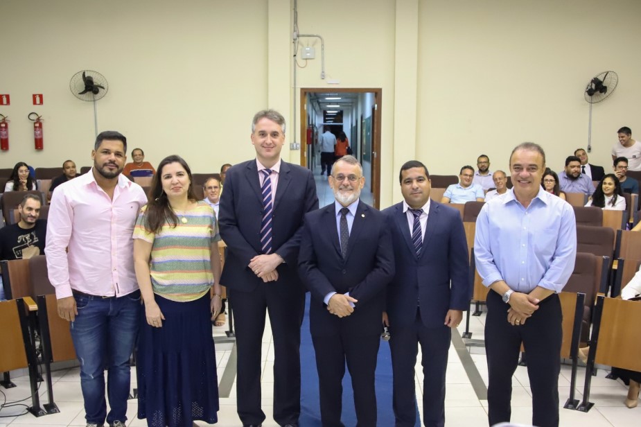 Professor Ciro Andrade, professora Ivana Carneiro, juiz Renzzo Ronchi, desembargador Renato Dresch, vereador Fábio Lemes e vice-prefeito Eder Detrez.
