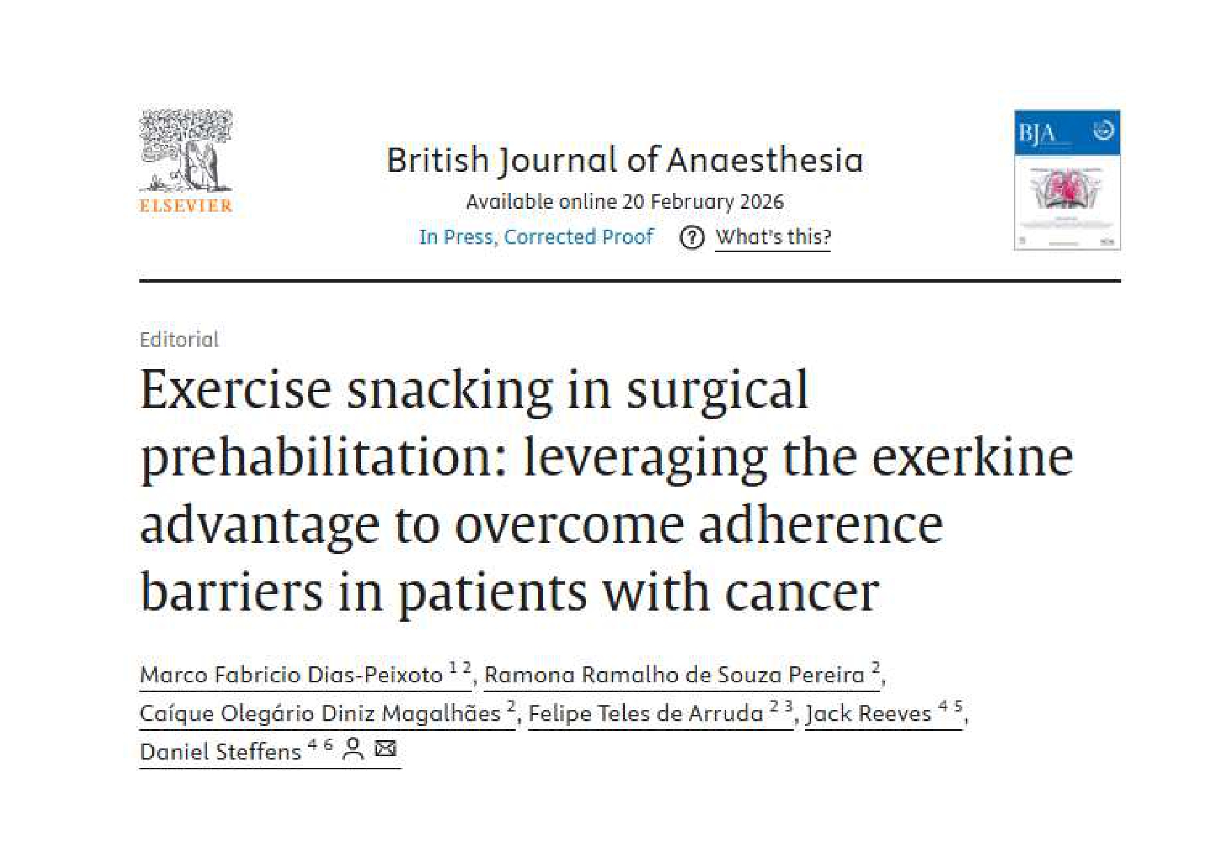 O professor do Departamento de Educação Física e orientador do Programa de Pós-Graduação em Ciências da Saúde da UFVJM, Marco Fabrício Dias Peixoto, conquistou publicação de artigo editorial na revista científica British Journal of Anaesthesia, que tem grande destaque na área médica, com fator de impacto 9.9. O artigo, publicado no final do último mês de fevereiro, discute estratégia inovadora chamada “exercise snacking”, que consiste na realização de curtas sessões de exercício vigoroso distribuídas ao longo do dia. A proposta surge como uma alternativa aos programas tradicionais de exercícios utilizados na pré-habilitação cirúrgica, etapa em que pacientes são preparados fisicamente antes de procedimentos cirúrgicos.