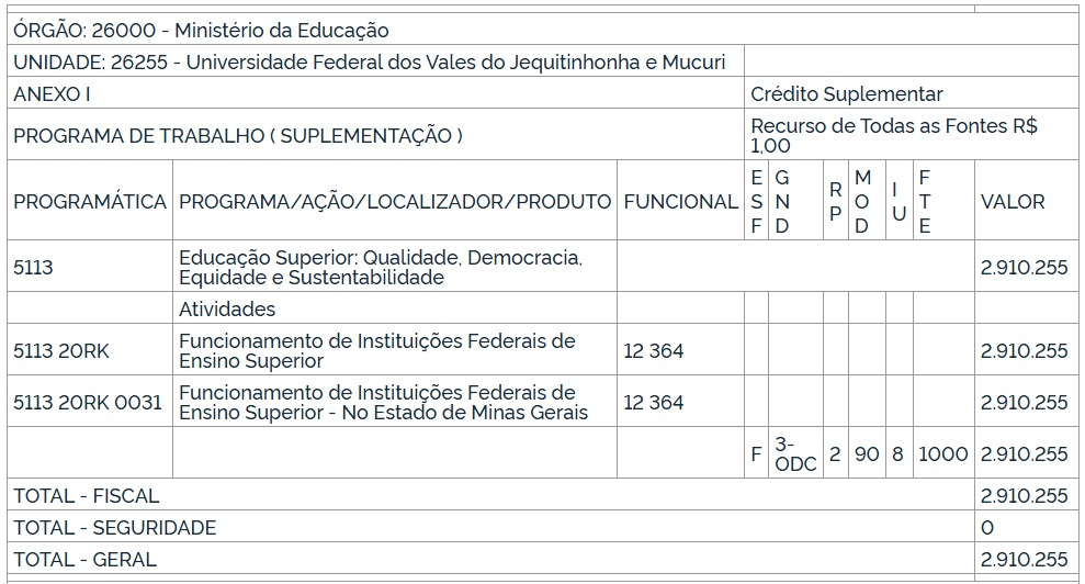 UFVJM recebe quase R$ 3 milhões em recomposição orçamentária
