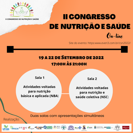 O congresso é realizado pelo Programa de Pós-Graduação em Ciência da Nutrição (PPGCN/UFVJM), em parceria com: Programas de Pós-Graduação em Nutrição e Saúde das universidades federais de Lavras (PPGNS/Ufla), de Minas Gerais (PPGNS/UFMG), e Universidade estadual do Ceará (PPGNS/UECE); Programa de Pós-Graduação em Alimentos de Nutrição da Universidade Federal do Piauí (PPGAN/UFP); Mestrado Profissional em Cuidado Primário em Saúde da Universidade Estadual de Montes Claros (PPGCPS/Unimontes); e com a Escola Nacional de Saúde Pública Sergio Arouca (ENSP).